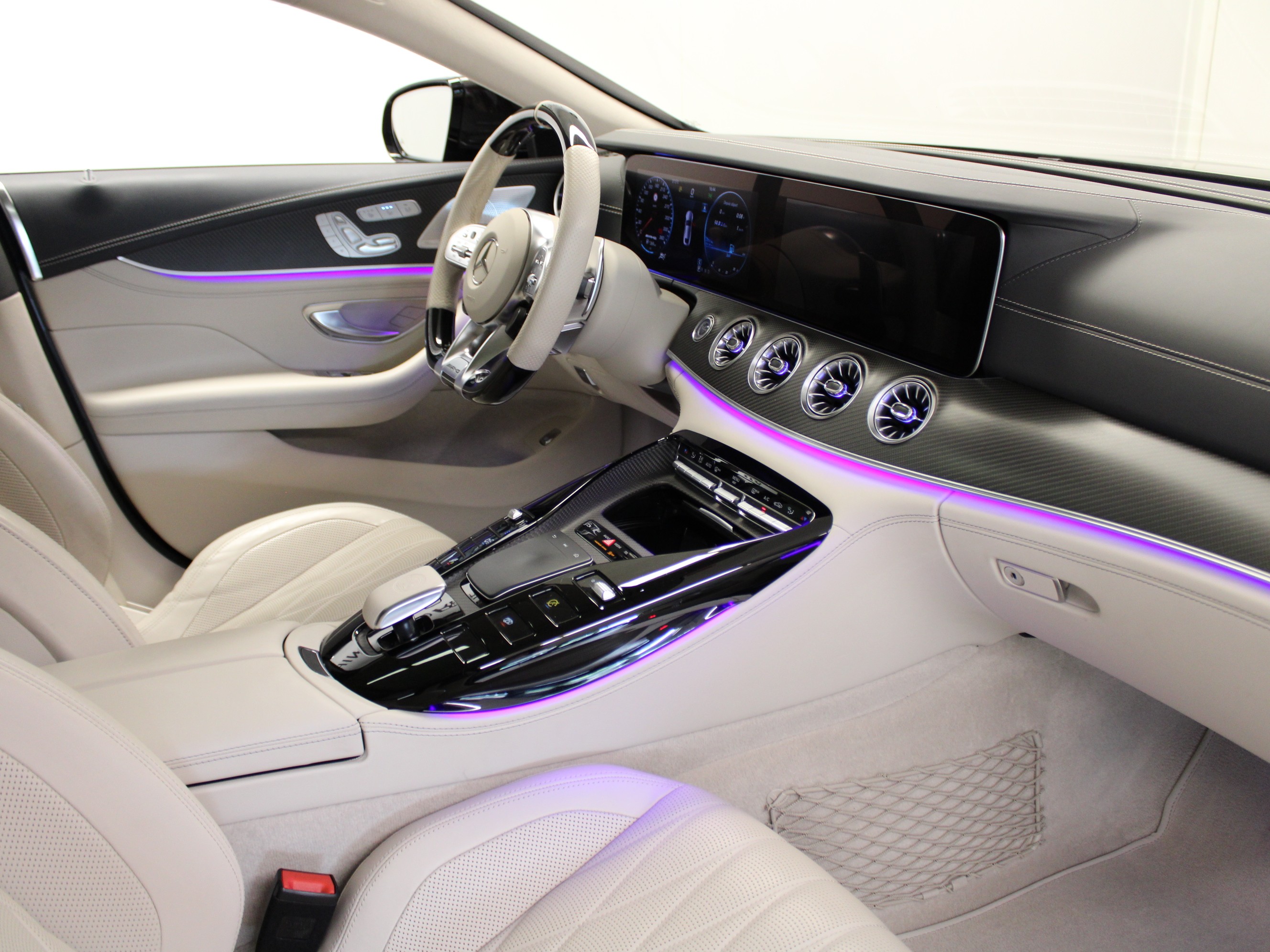 Peinture gris graphite - mise en peinture magno Cuir Exclusiv - beige Roues AR directrices Sièges AR individuels Distronic Plus Aide au parking active Pack mémoire Sièges AV climatisés Sièges dynamiques Toit ouvrant Head Up Display Caméra panoramique Rétroviseurs ext carbone Pack Keyless-Go Pack Air Quality Pack rétroviseurs Pack Dynamic Plus AMG Pack confort actif